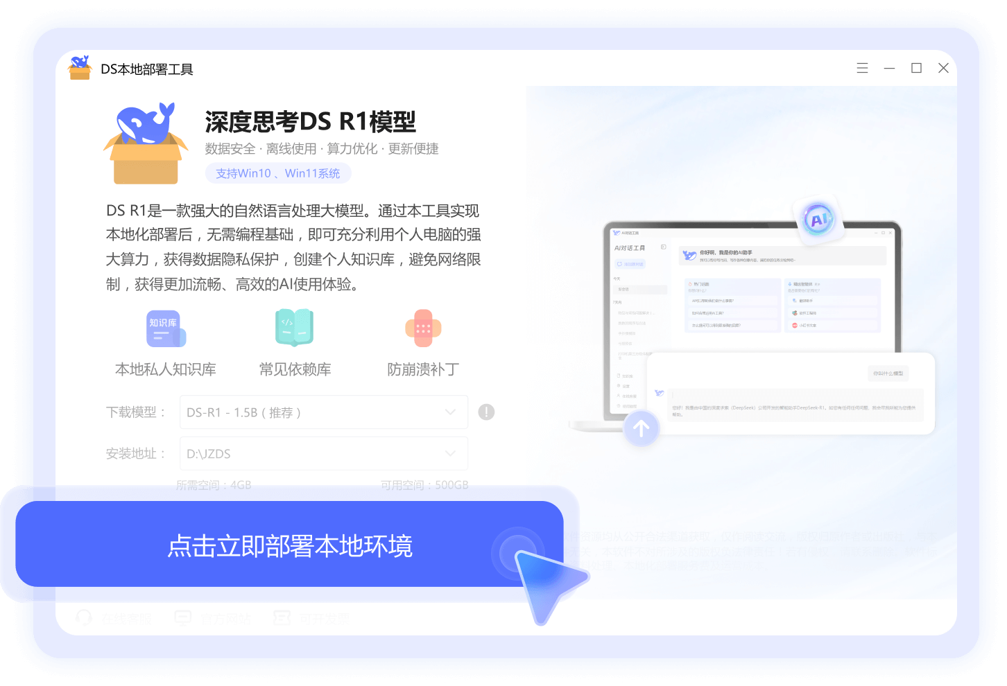 无需编程知识,极简部署流程,只需选择模型,自动安装环境,告别繁琐配置。